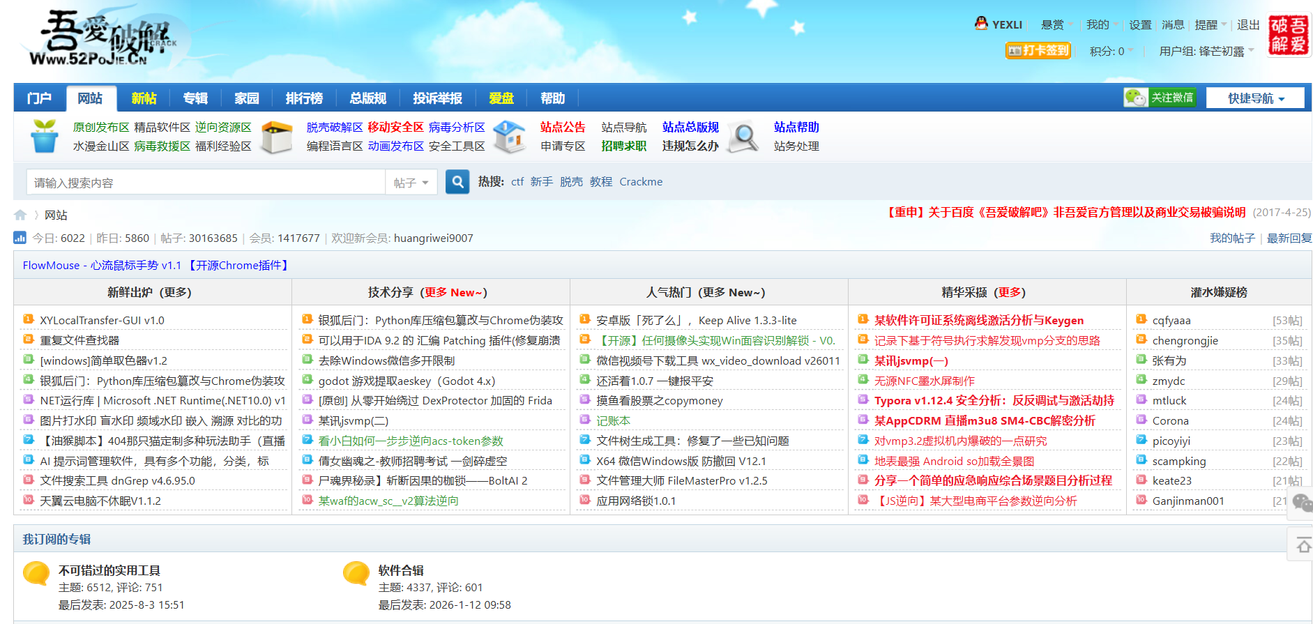 首页 吾爱破解 吾爱破解 论坛 2026-01-14 23:22 访问网站 吾爱破解论坛(英文名:Love Crack Group,简称LCG)创立于2008年3月13日,是一个专注于软件安全与病毒分析的技术交流社区,涵盖PC软件安全、移动安全等领域,由软件加密解密及反病毒爱好者共同维护 相关文章 商量 - AI生活小帮手 MT论坛 天涯论坛 灵光全模态AI助手 讯飞星火 天涯社区_华人最大的神帖社区论坛_新天涯论坛 天工AI DeepSeek 评论 暂无评论,快来抢沙发吧!