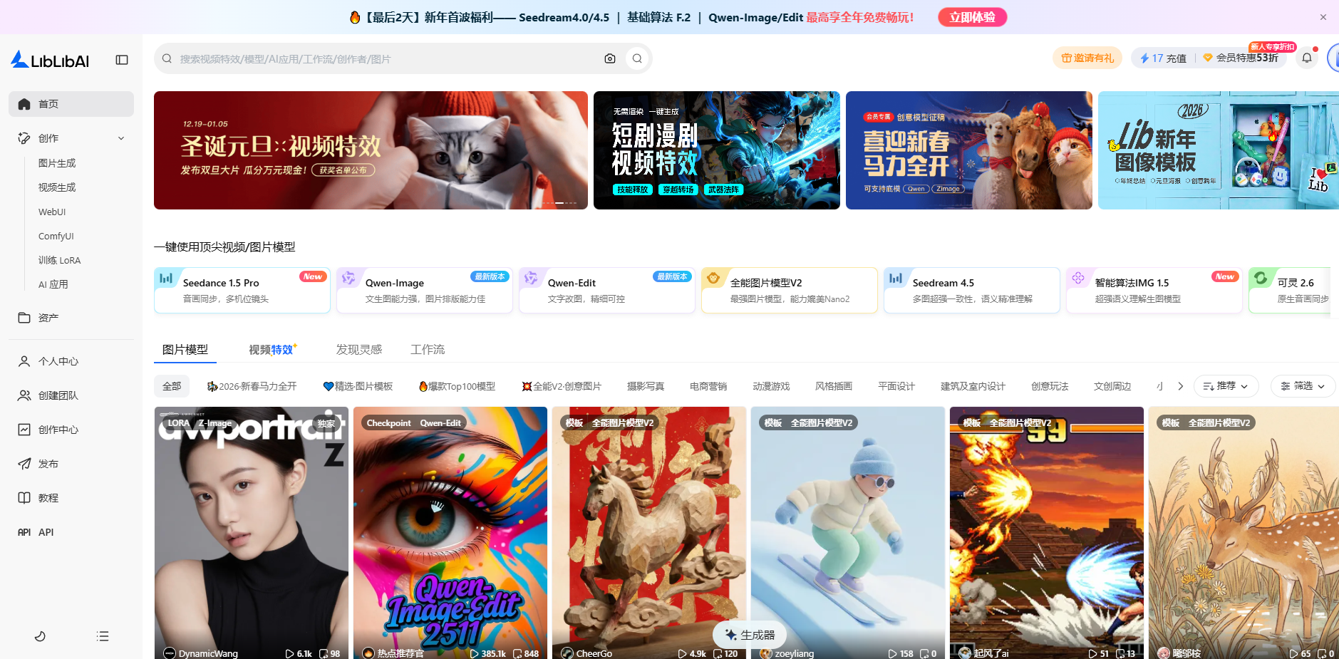 LiblibAI(哩布哩布AI)是中国领先的AI创作平台‌,提供模型下载、在线绘图、社区互动等功能